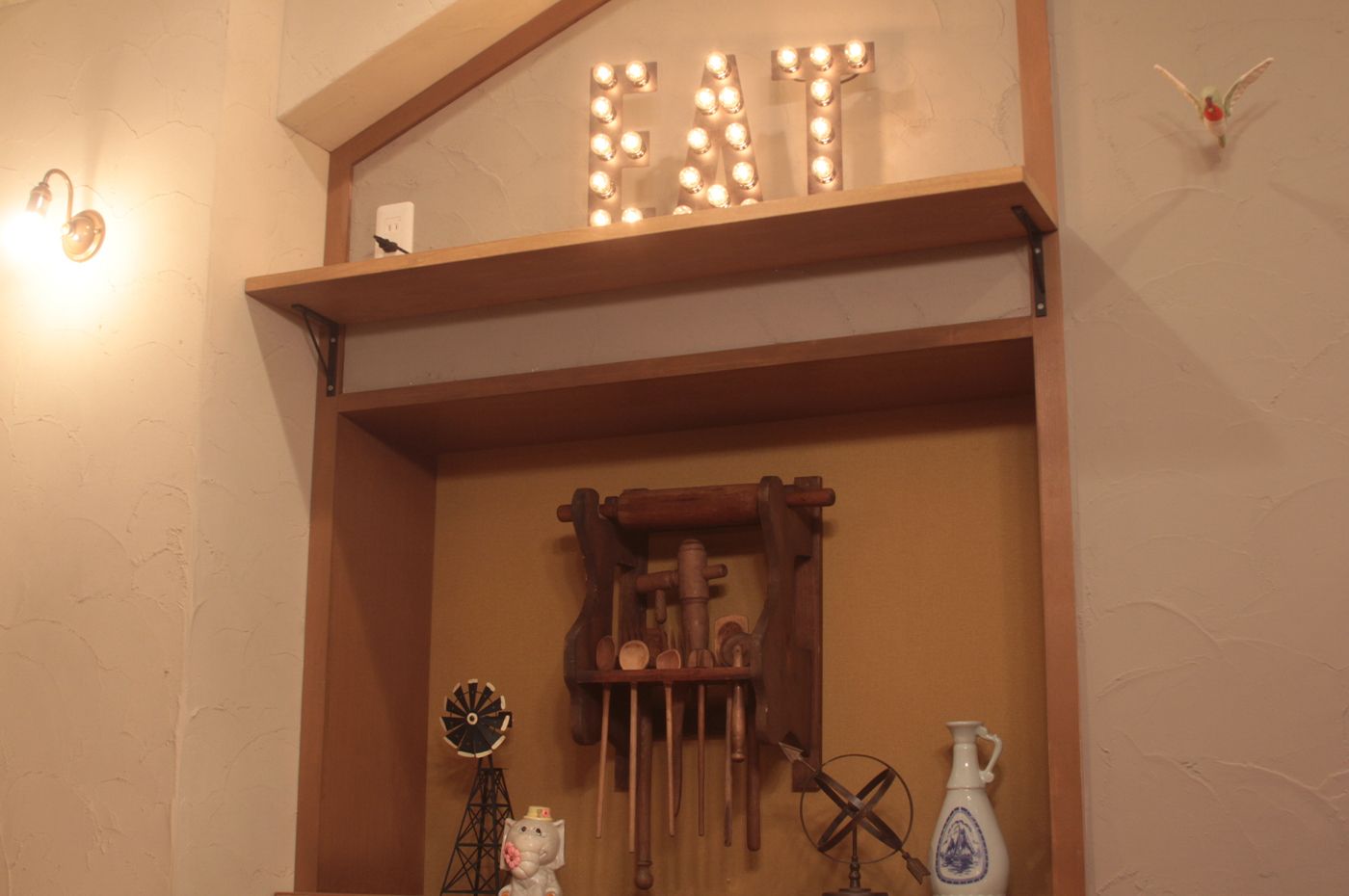 お店の中に入っていくと、壁には飲食店にぴったりのイートサインが輝いています。