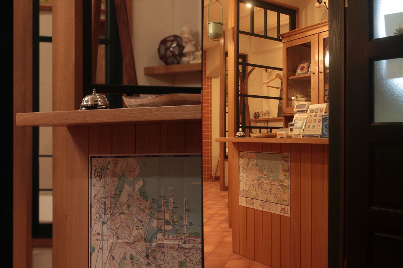 お店のテラコッタタイルとオーク材の家具の相性がぴったり!
