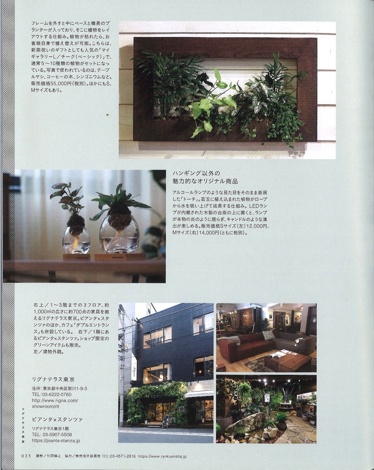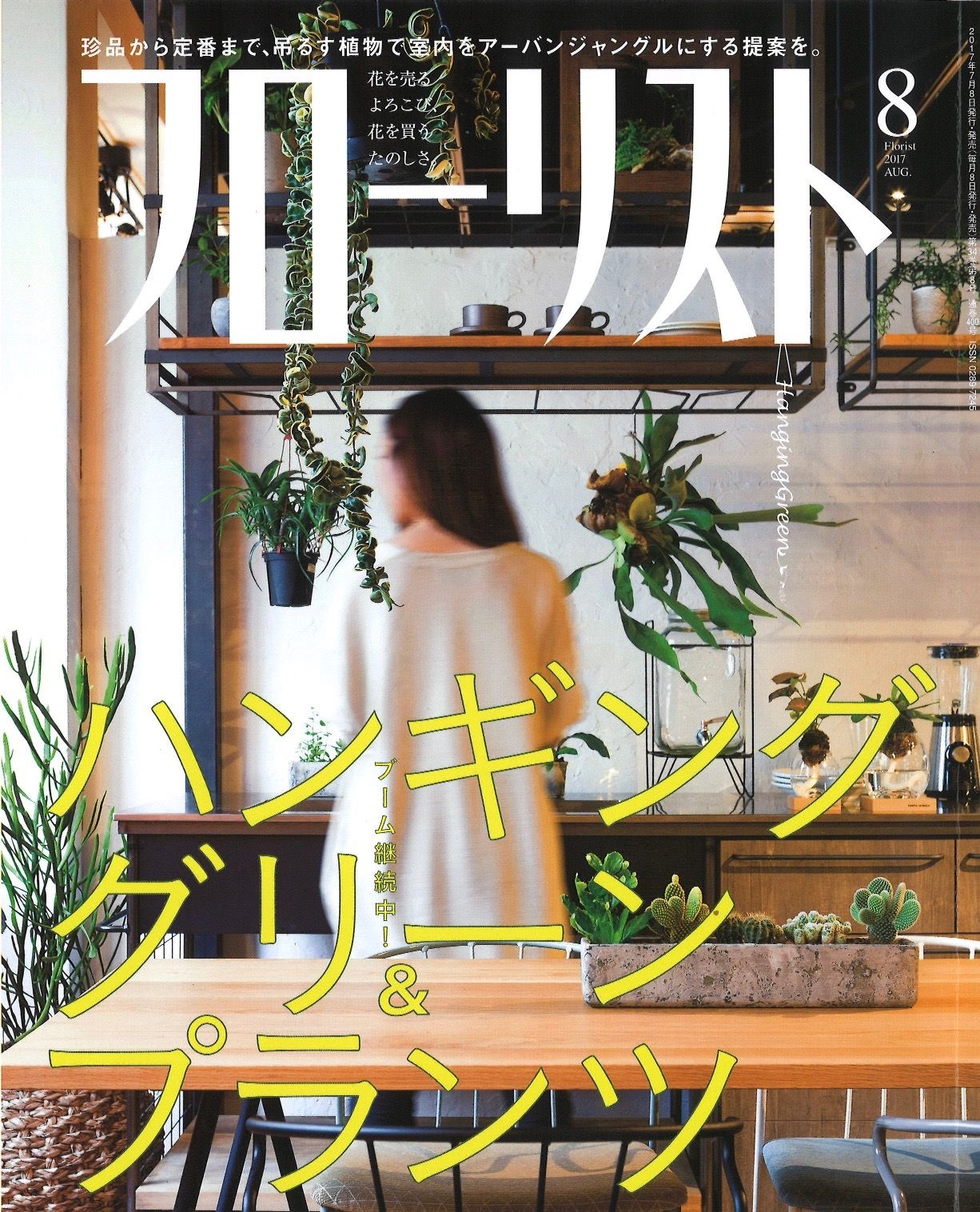 誠文堂新光社「フローリスト」の8月号【ハンギンググリーン特集】で、ショールーム内のグリーンのディスプレイが、4ページに渡って紹介されました! キッチンやベッドルームなど、「こんな所にどうやって・・?」という様なシーンにも、ハンギンググリーンを飾って見事に居心地の良い空間を創り上げています。 今回は当ショールームが表紙に!是非、あなたのお家にもハンギンググリーンを取り入れてみませんか?