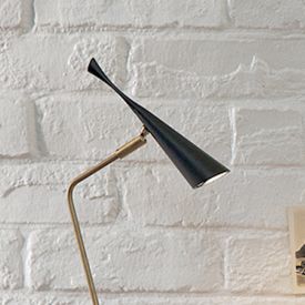 アルミの削り出しだから作れる、美しいシェイプのシェードが特徴のスタンドライト 。
