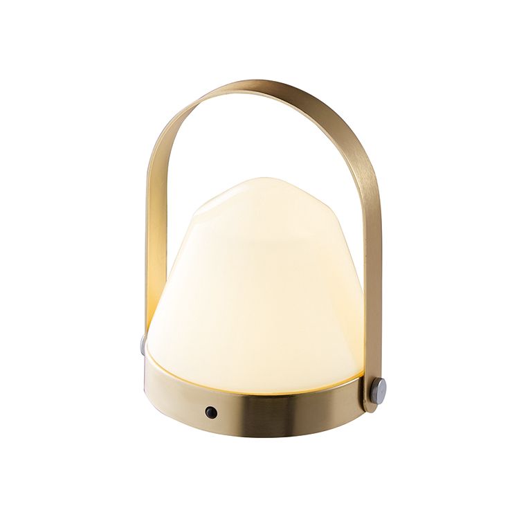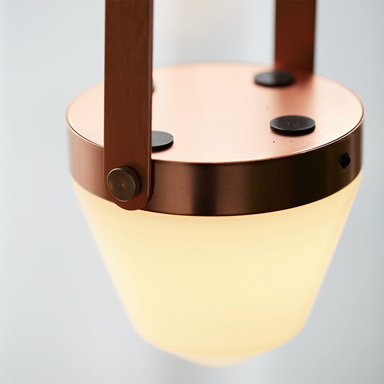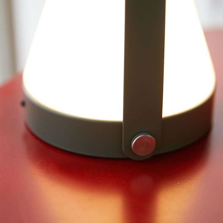 丸みのあるフォルムの乳白色のガラスシェードとマットで落ち着いた本体のカラーのコンビネーションが可愛いランプ。