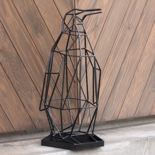 いまにも走り出しそうな可愛らしいペンギンがモチーフのとってもユニークなワイヤー傘立て。