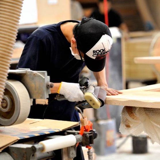 このフォルム作るために木材の研磨は1つ1つ、職人さんが手作業で行います。