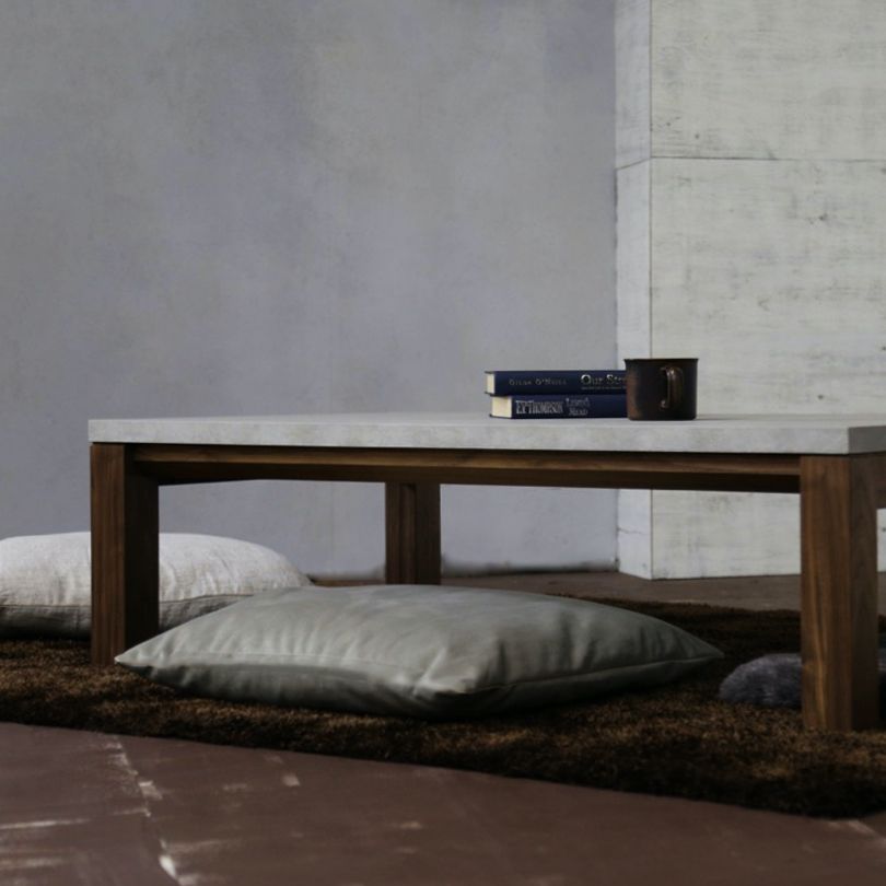 打ちっぱなしのコンクリートのような天板は、こたつとしてのデザイン性はもちろん、ローテーブルとしても高いデザイン性になっています。
