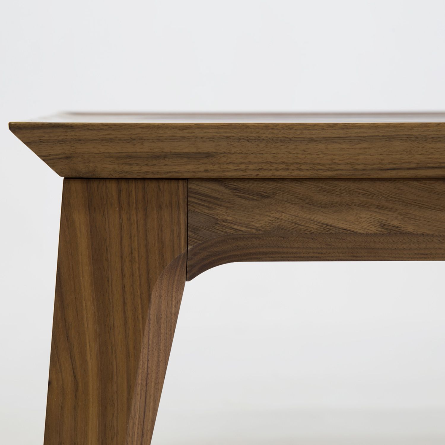 落ち着いたカラーのウォールナット材との組み合わせは、天板の重厚感と相まってキリッとした印象に。