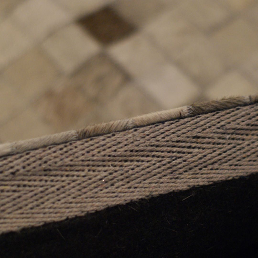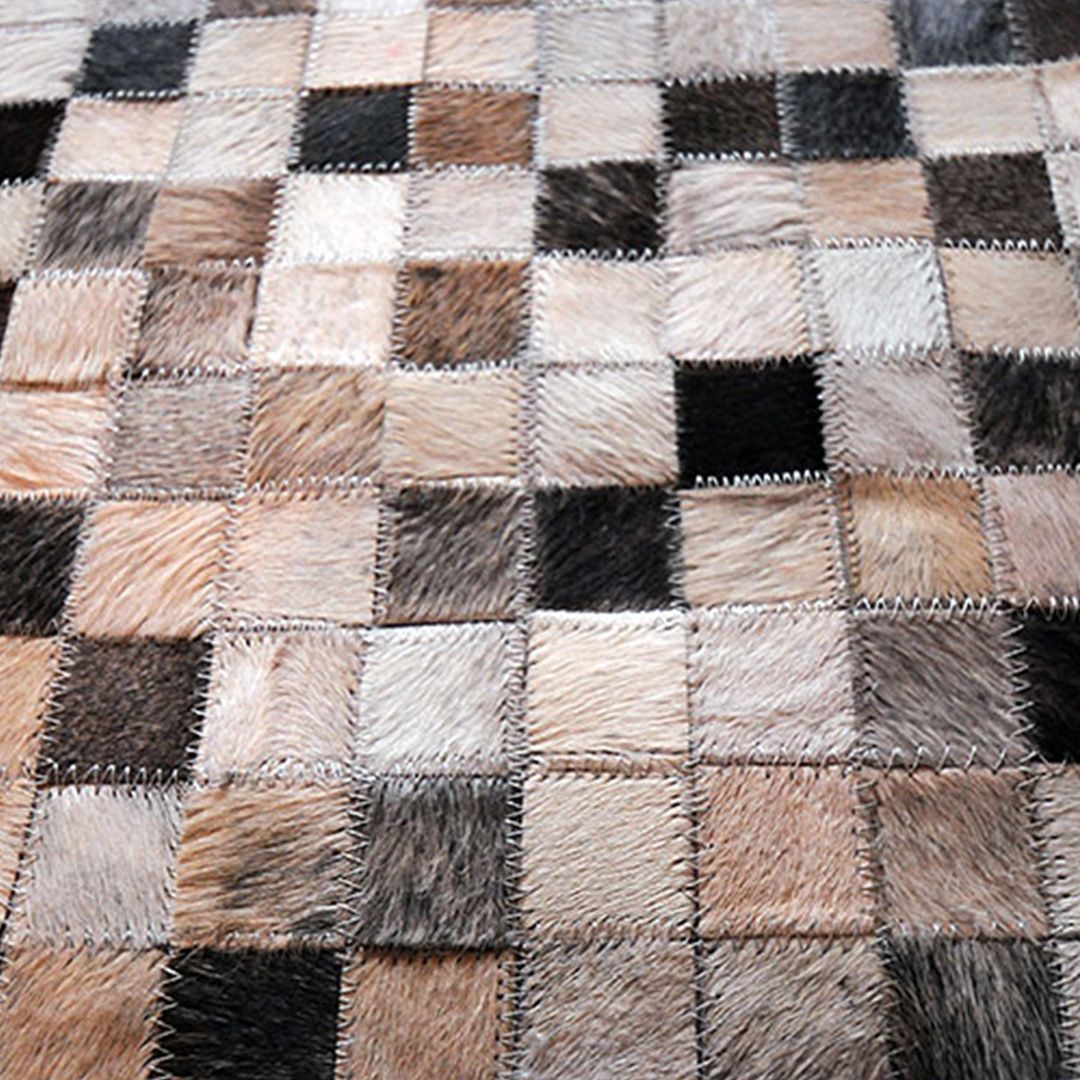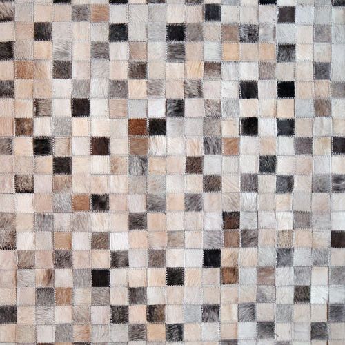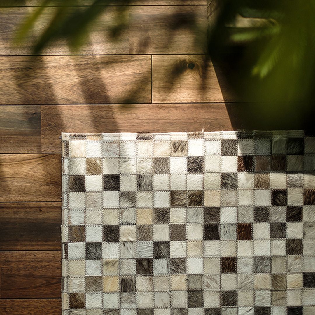 稀少なハラコレザーをきれいにパッチワークした贅沢なラグ。