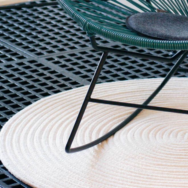 パーソナルチェアの下にアクセントで敷くのがおすすめです。