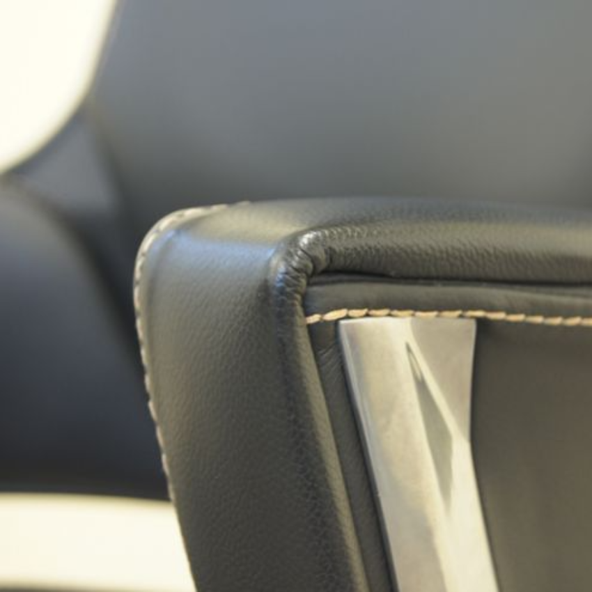座面と背中の部分はアームの部分のみでつなげるデザインにし、革シートが放つ独特の強い印象を軽減し、軽やかでスタイリッシュなデザインに仕上げております。