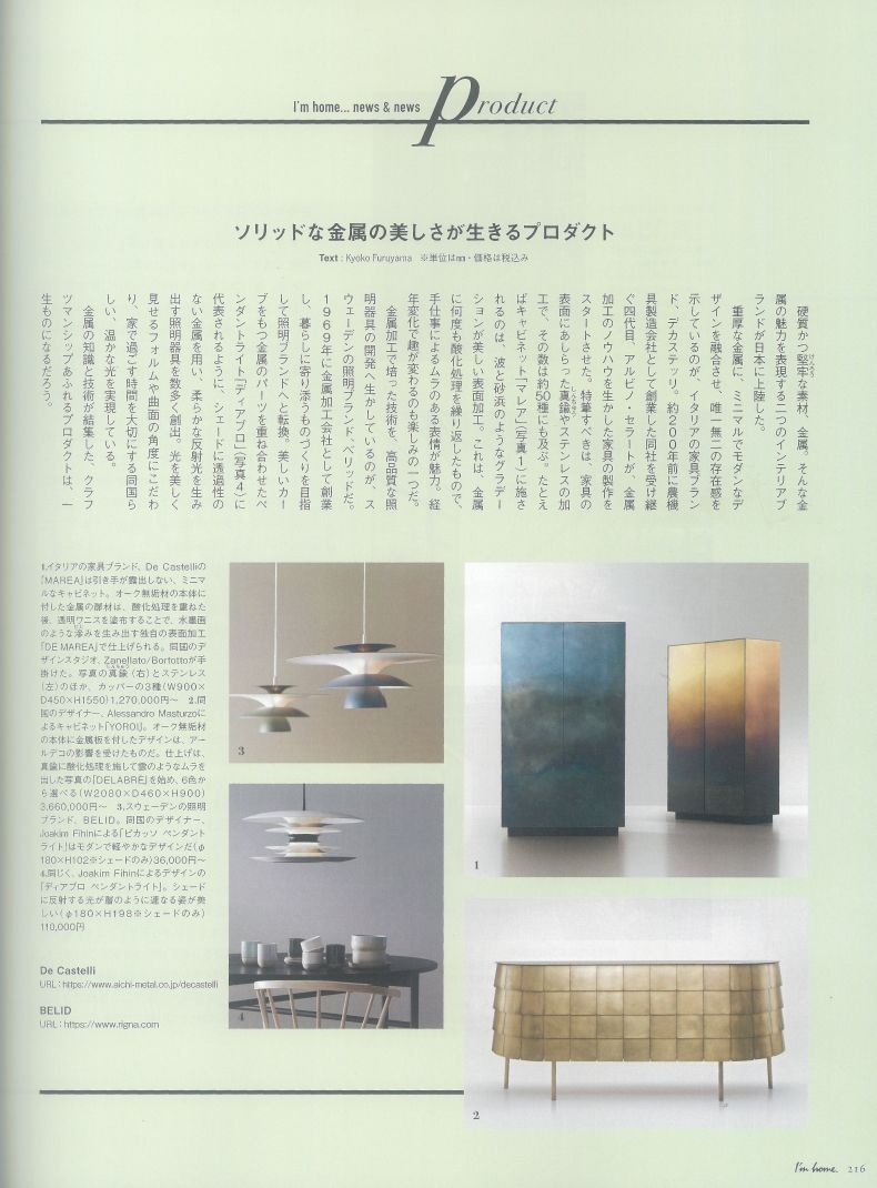 7月16日(金)発売の、I'm home no.113 にリグナの商品が掲載されています! リグナが正規代理店として取り扱っている 「BELID」 の照明を取り上げていただきました。 ぜひチェックしてみてください。