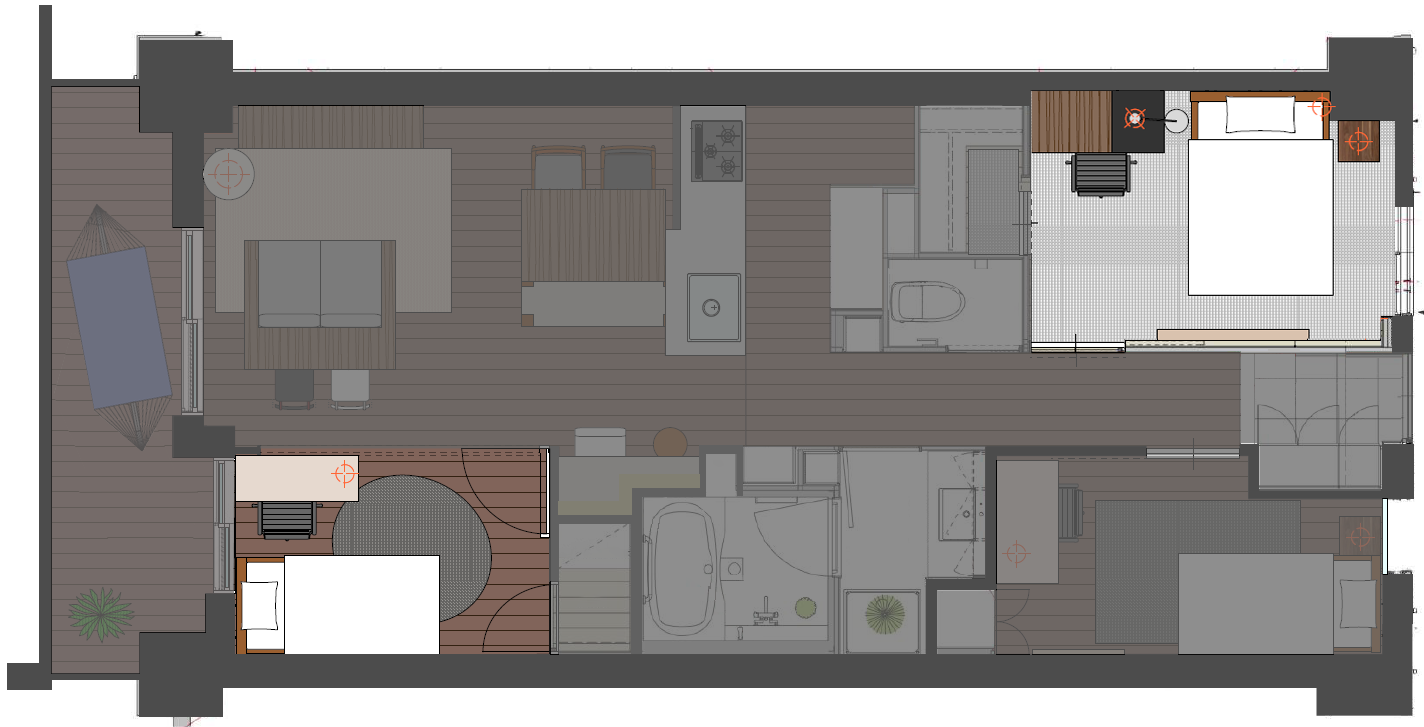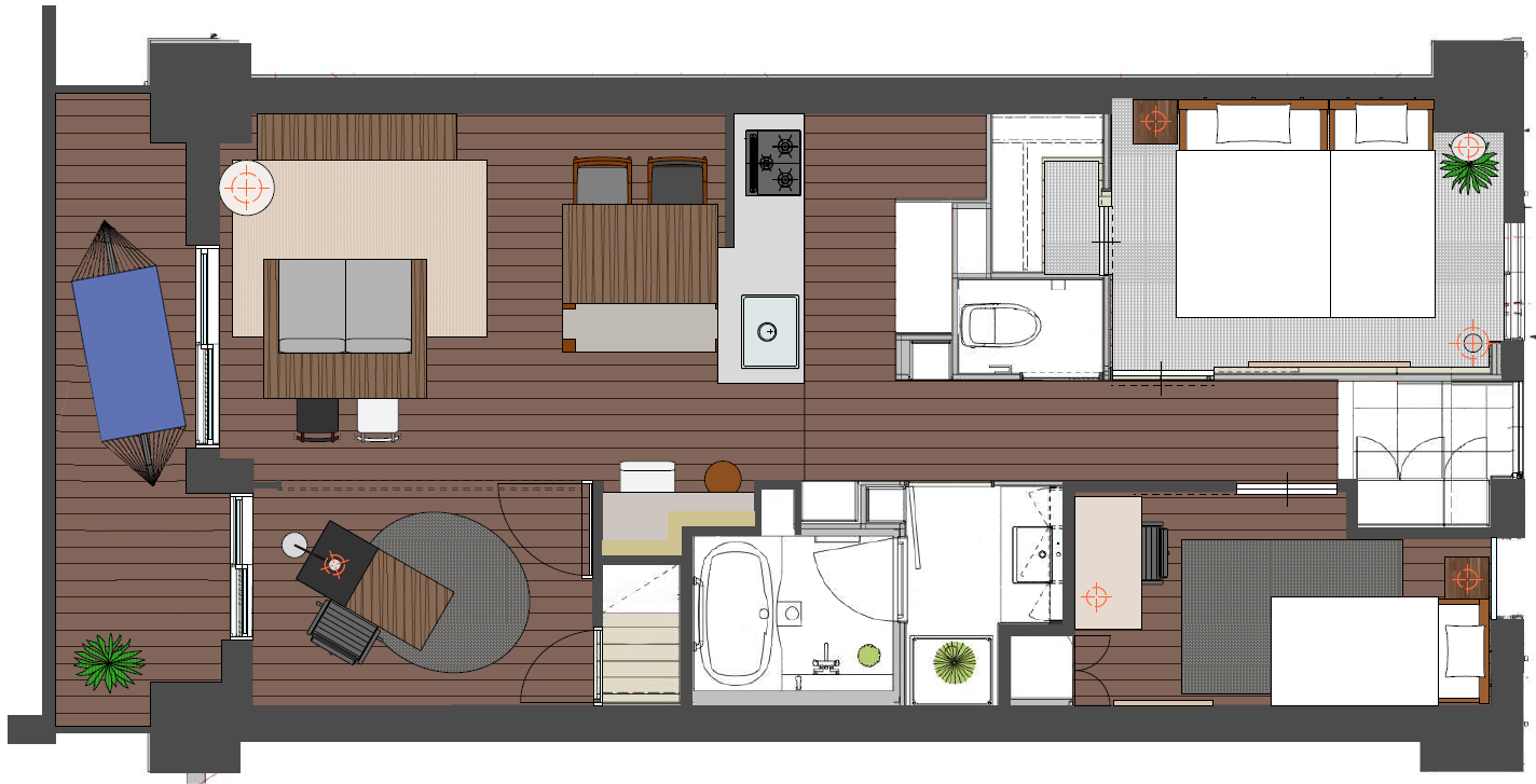 選定した家具、レイアウト。こちらをご覧いただいて頭の中で想像してみてください。