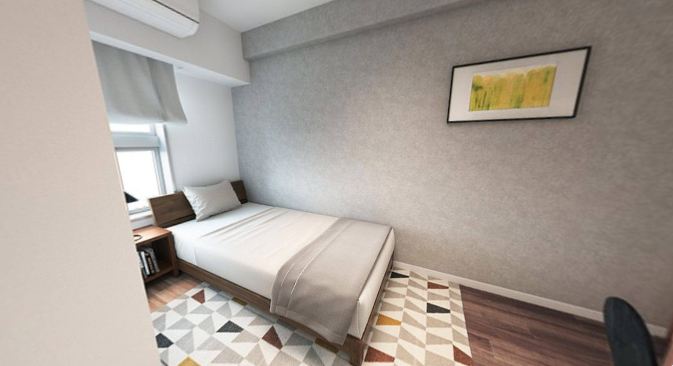 →主寝室にダブルとシングルサイズのベッドを並べて配置する事で、母子で就寝できる。
