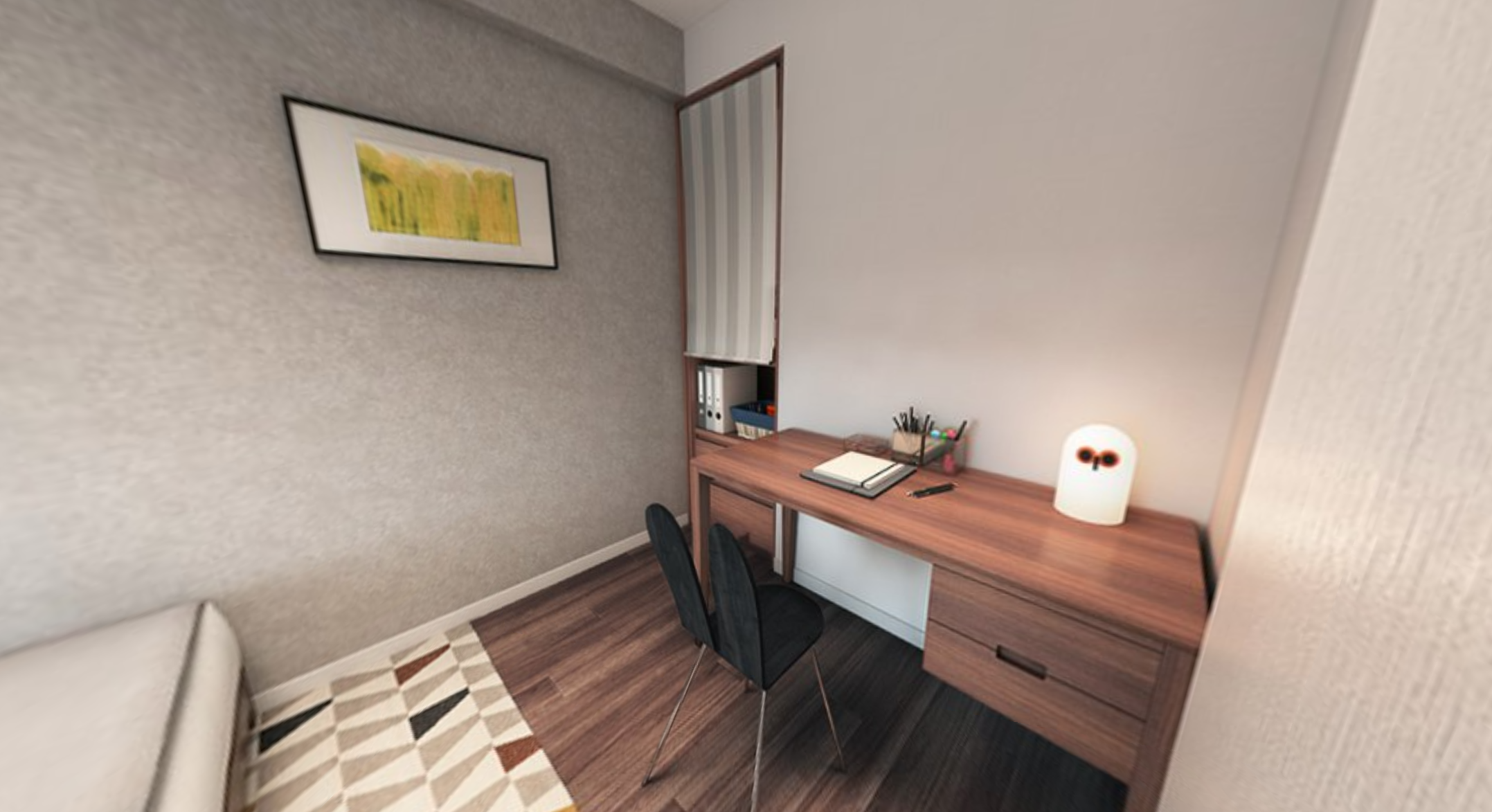 書斎が無くなったとしても、主寝室のベッドが移動したことで、書斎で使用していたデスクも余裕で入れる事が可能です。