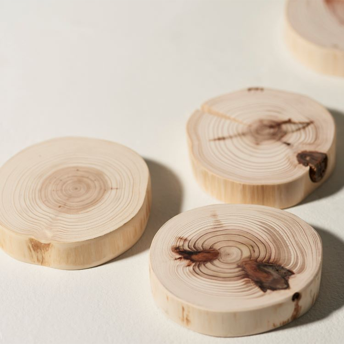 国産針葉樹の間伐材(木が密集して育たないように一部を切り出した際に出る木材)を活用した、サステナブルなディフーザー。天然木ならではの一つ一つ異なる表情が楽しいアイテム。ステンレスのフレームと木のコントラストがまた美しいのです。