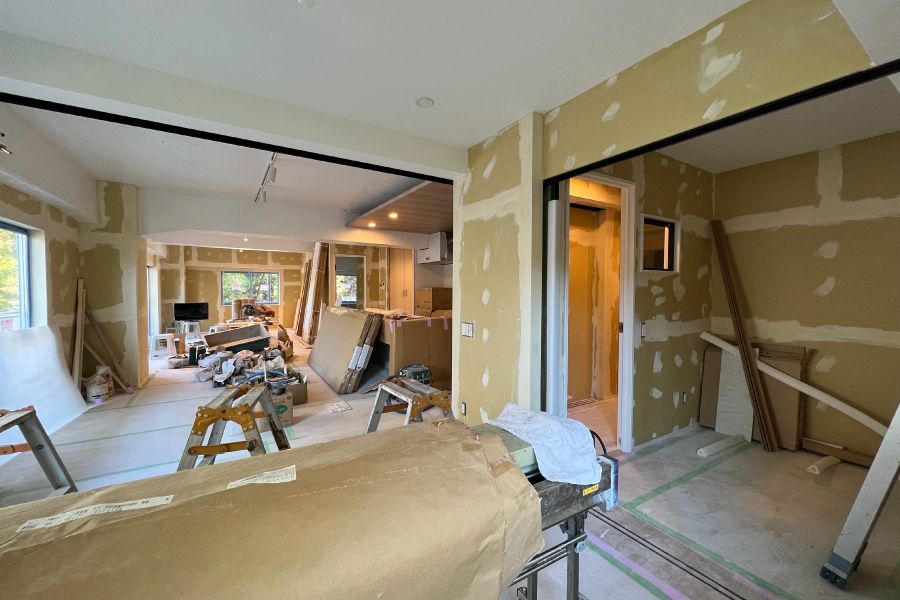 リフォームの現場風景。リフォームはビフォーアフターの変化が楽しめるので、途中過程も面白い。