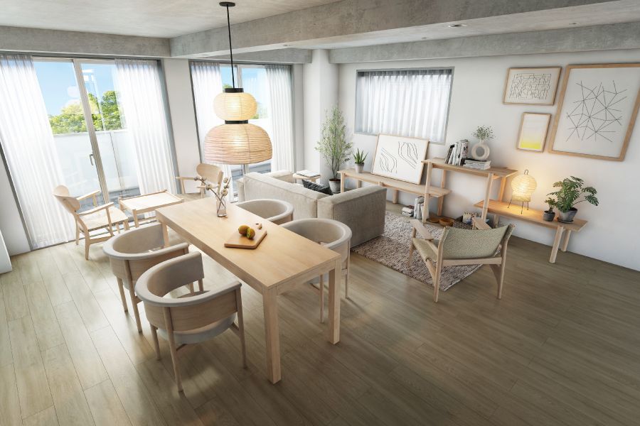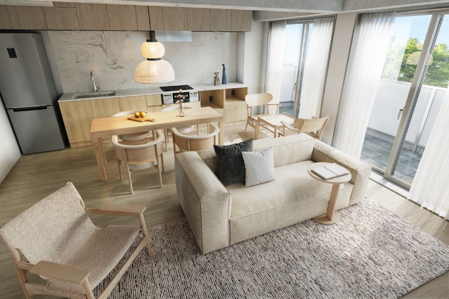 これまで何度もリノベーションを経験し、また不動産に対する高い知見があるジェレミーさんならではの思い。そんなジェレミーさんからいただいたインテリアのイメージは昨年から世界的に人気のあるインテリアスタイル「ジャパンディ」。「ジャパンディ」とは日本のインテリアテイストと北欧のインテリアテイストをミックスしたシンプルでミニマルなインテリアテイスト。ここにリグナのコーディネーターがインテリアの魔法をかけ、CGでイメージを仕上げる。