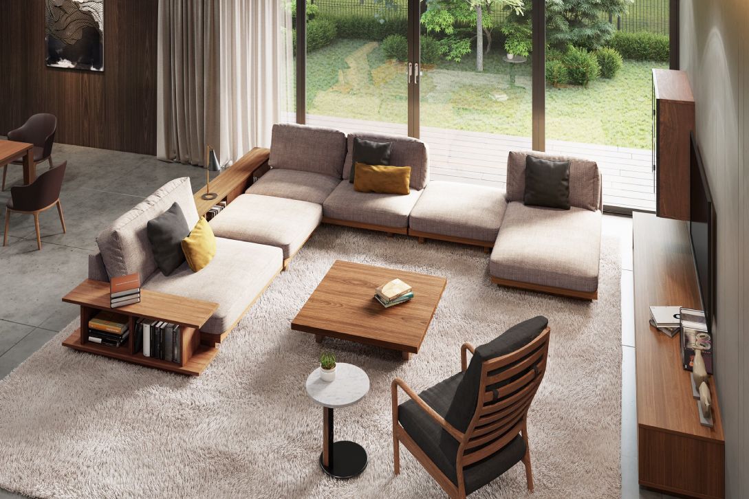 限られた空間を、使う方に合わせて世界観を崩さずに変えられるコーディネートプラン。ジェレミーさんの想いでもある「10年経っても20年経っても続く長期的な価値」を変化を楽しめるコーディネートで実現させた。