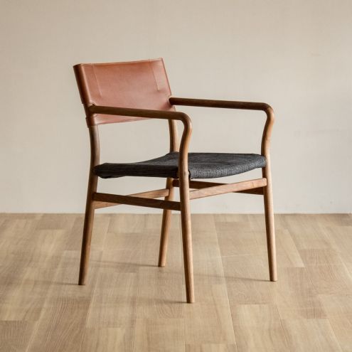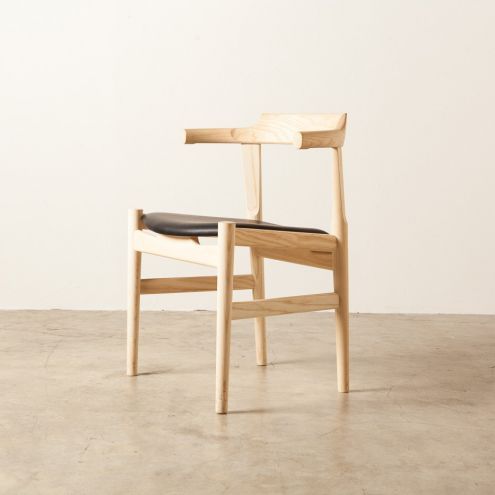 アームから前脚にかけて湾曲する細身のフレームが、美しいプロポーションを実現し、チェアとして非常に軽量に作られています。高級感溢れるレザーの風合いと、細身のフレームがよく似合ってます。