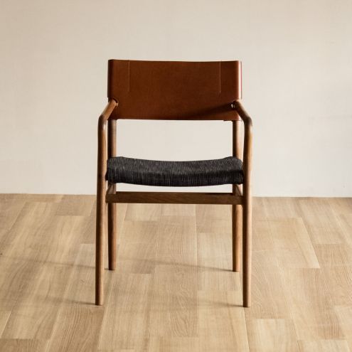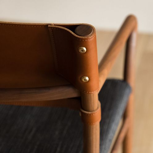 背もたれに使用しているレザーは、使い込むことで味わいを増します。レザーのハリ感が洗練された印象に。背面の少し変わったデザインもポイントです。