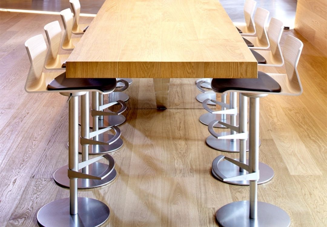 カウンターチェアは、腰を掛けるスタイルで設計されており、コンパクトな座面と細身の脚が特徴です。