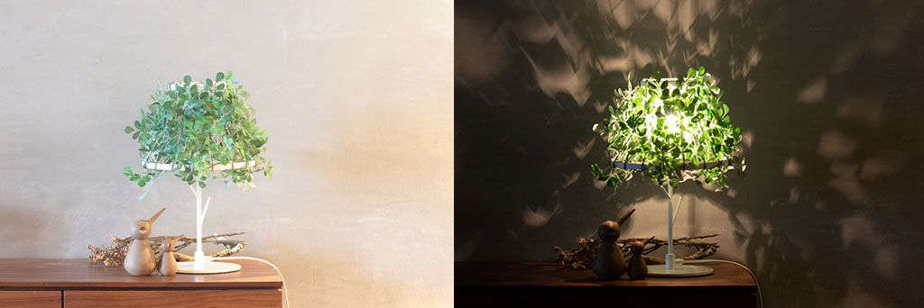 電気をつけると、まるで大木の下にいるような影が広がります。