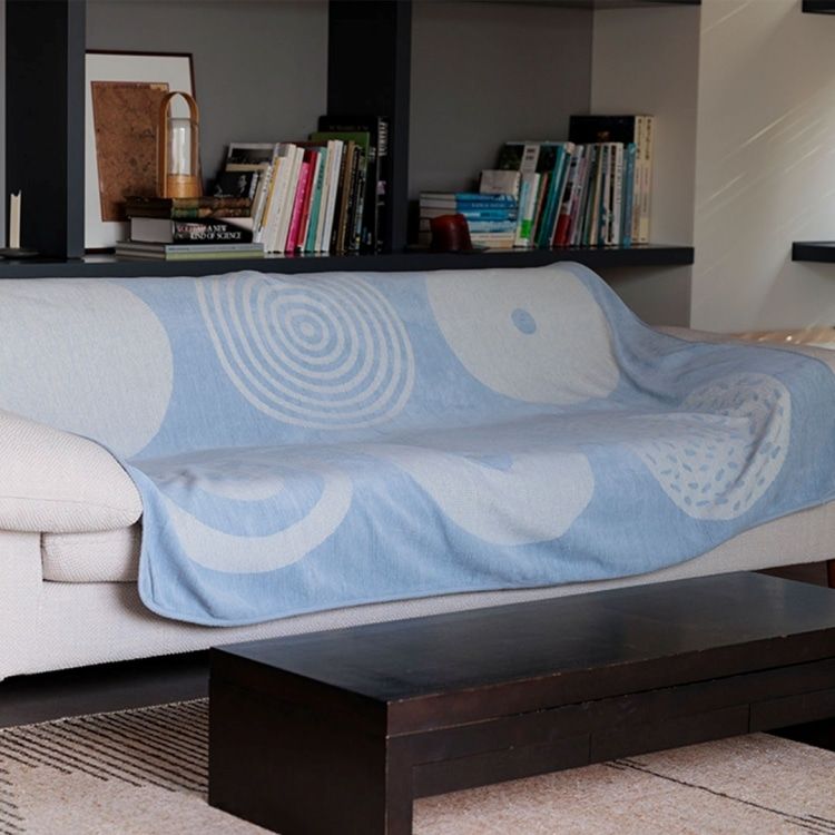 スウェーデン最高峰、山頂を氷河に覆われた優美な山「ケブネカイセ」からインスピレーションを受けたデザインのウールスロー。スローは北欧の生活ではどこの家庭にもある欠かせない生活用品。羽織ったり足元に掛けたり、寝室やソファなどあちこちに置いて自由に使うそう。クリッパンのウールスローはドビー織で空気を含んでいるのでとても軽くとても暖かいです。生産過程の中で発生し廃棄される残糸や糸くずを利用した、リサイクルメリノを使用していて地球にもやさしい素材で作られています。