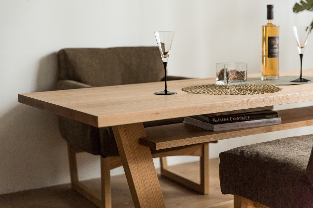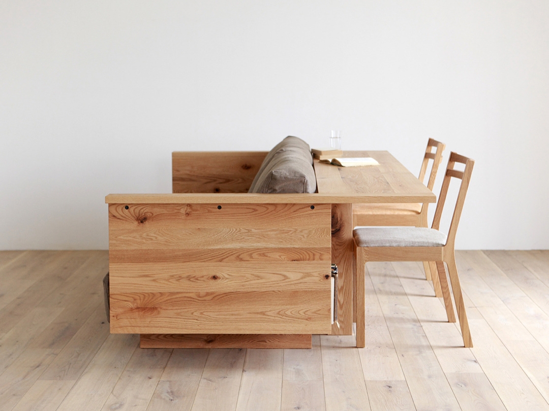 厚みのある無垢材が、安心感と力強さをもたらすことで、一生物の風格を目指しました。長く大切に使うほど風合いが増し、経年変化によってさらに美しい存在感と調和を生み出します。