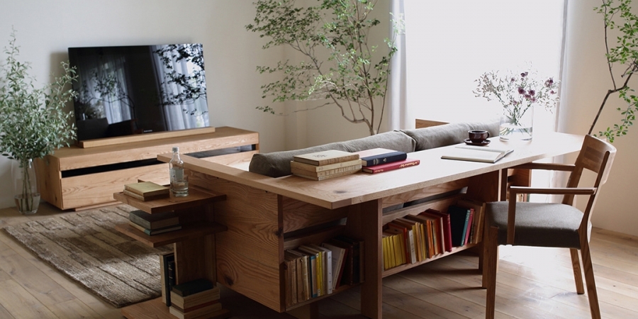 そして、もうひとつの楽しみ。家具を「育てて」いくこと。無垢材家具は、どうしても使う環境によって乾燥や高温で割れてしまうこともあります。でも日頃の使い方に、少し気を遣ってあげるだけで大丈夫。そうやって手をかけて徐々に、使い込まれていい色に仕上がった色合いや、自分の手に馴染んでいく過程をゆっくりと味わうことができるのも良い。