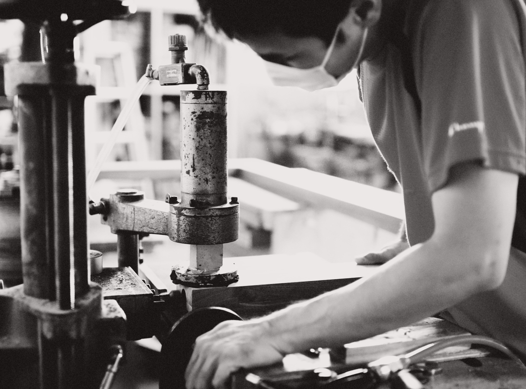 商品の製作開始から、お客様の元へ送り出すまでの約2ヶ月間、素材の加工から研磨、組み立てまで、熟練の職人がひとつひとつの工程を丁寧に作業します。