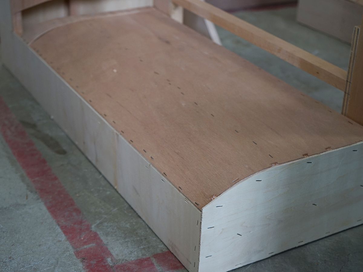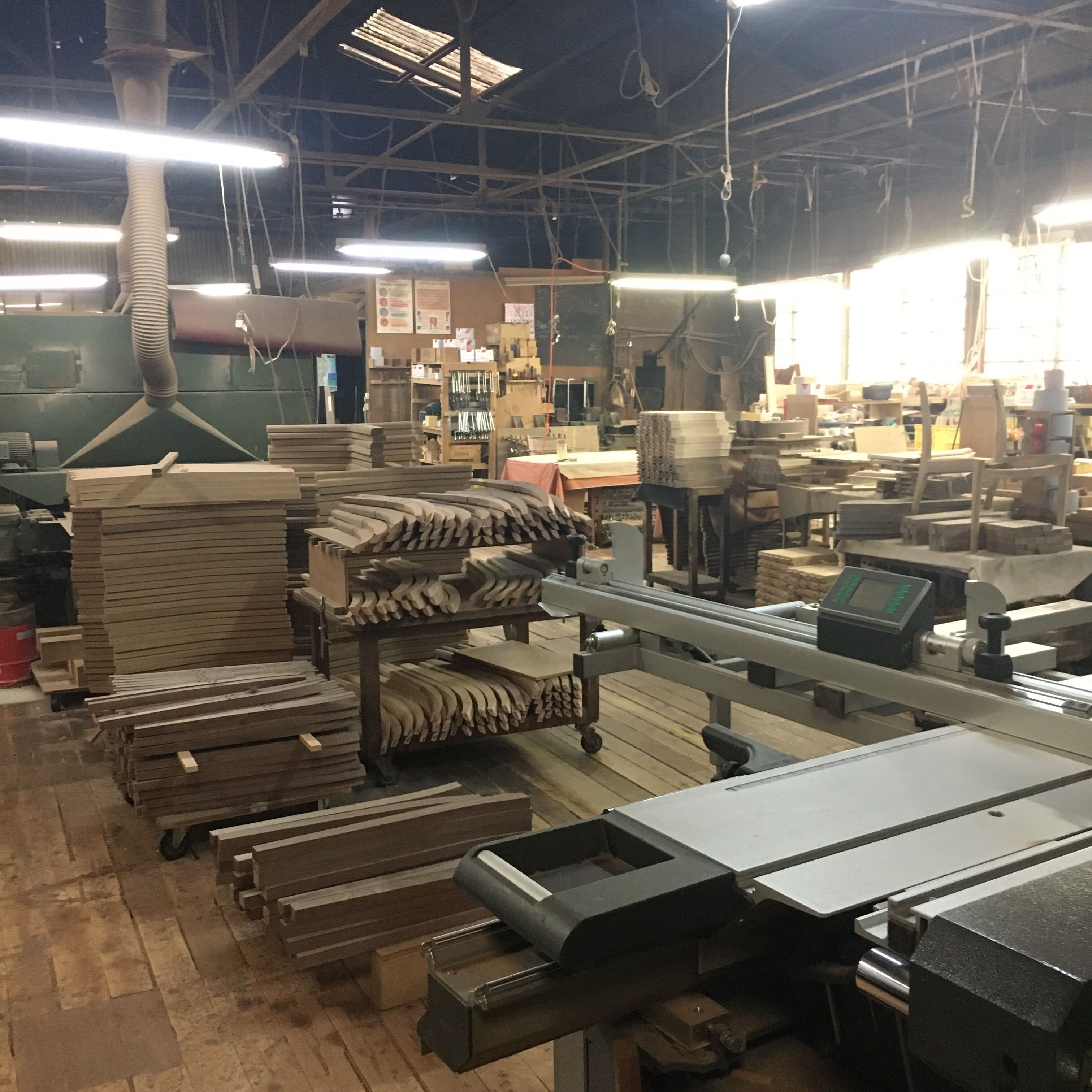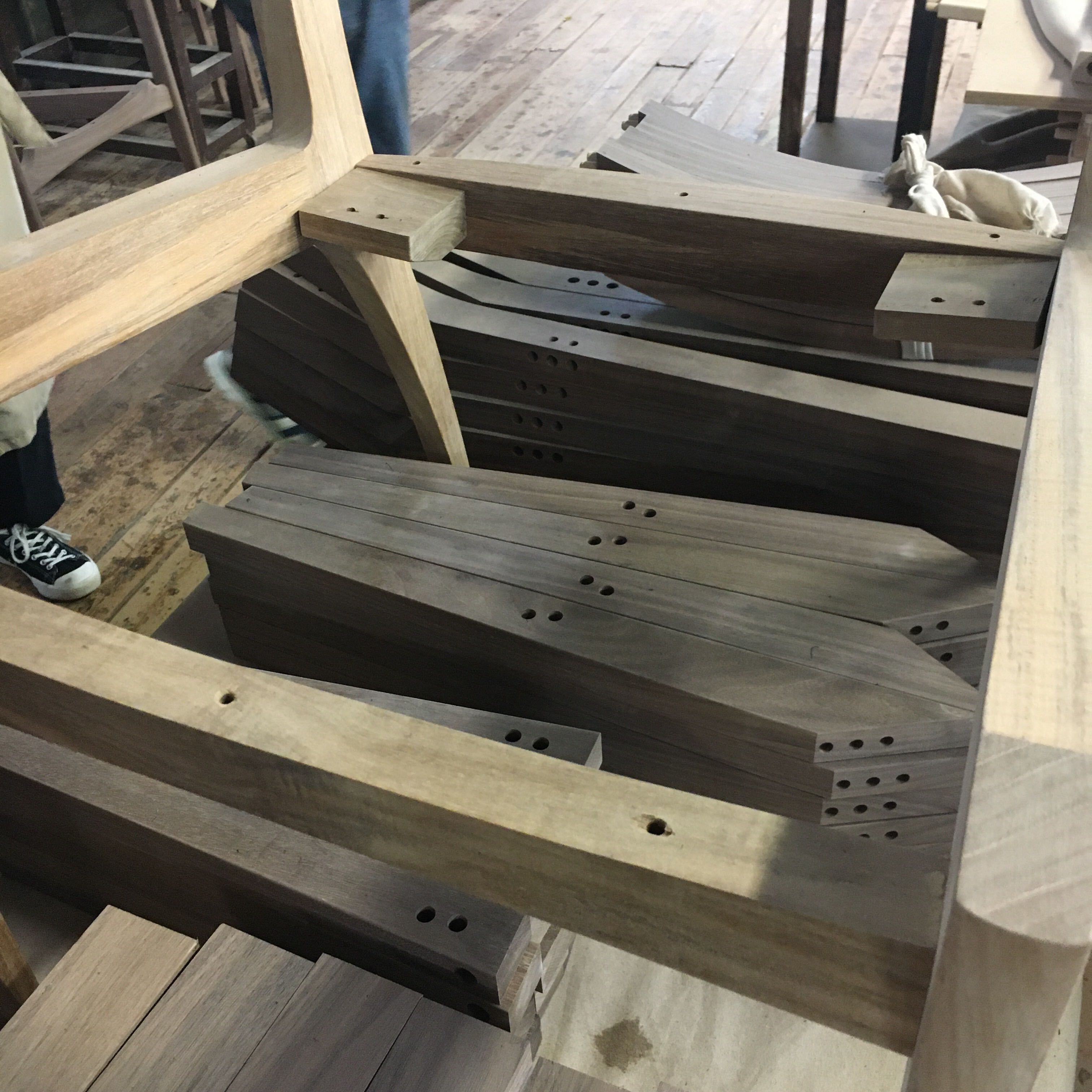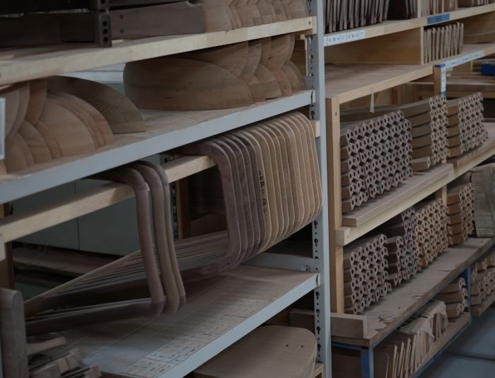 使用される木材はドイツから輸入した板材。座ったり、寝っ転がったり、あらゆる動作に耐えられるように、【しなりがあって衝撃を吸収しやすいブナ材】を採用しているそうです。それぞれのソファを支える木枠などに使用されるため、必要なパーツに切り出されます。