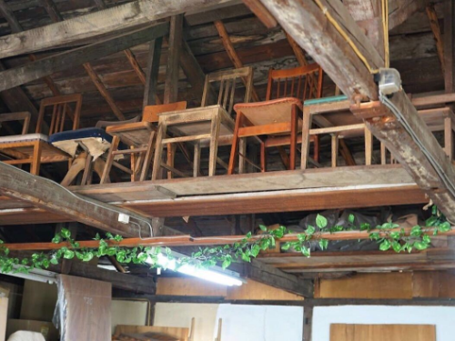 中には所狭しと並べらた作品の椅子。見上げたら上にも椅子が並んでいてビックリしました!!