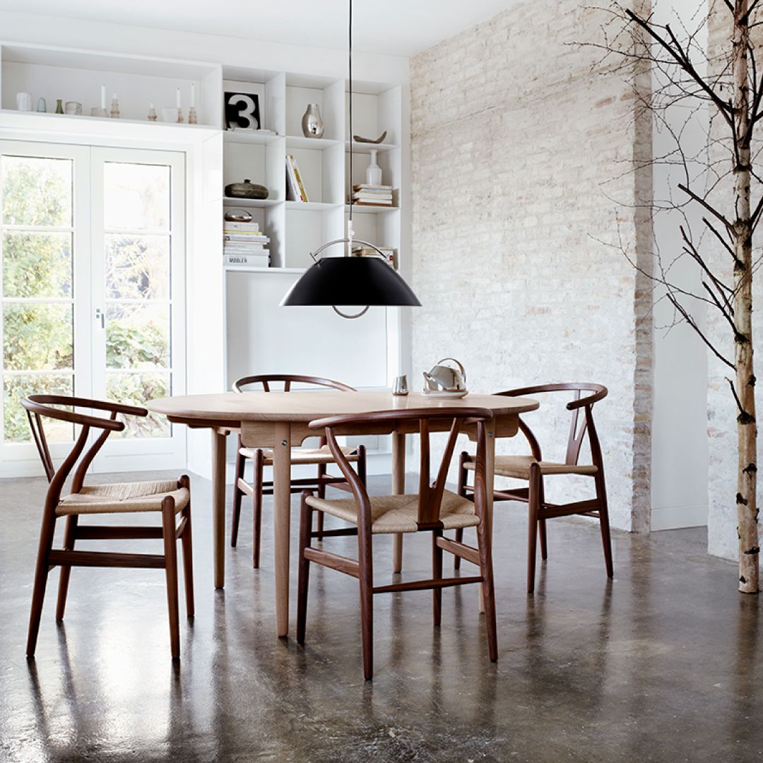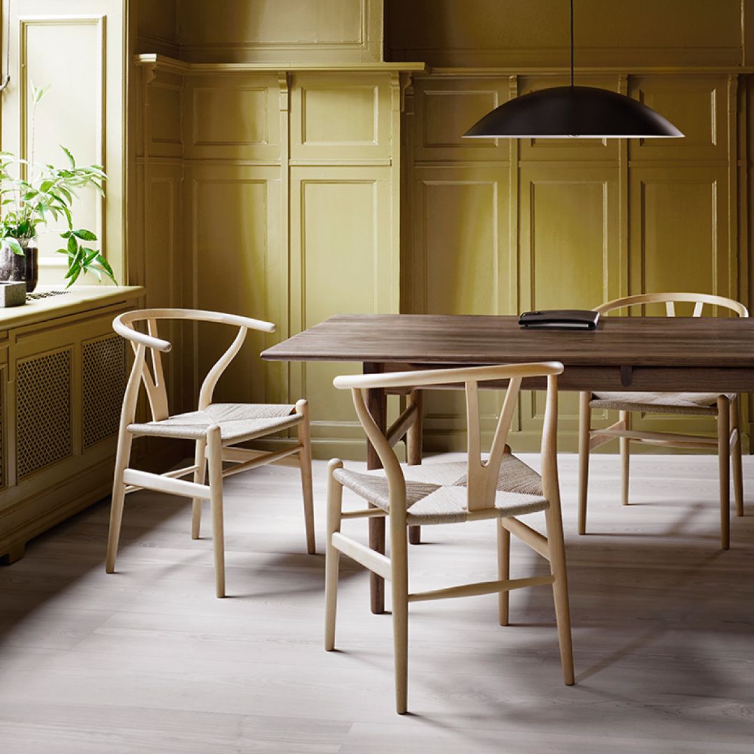 アームを支える背もたれの支柱が"Y"に見えることから【Yチェア】の愛称で親しまれているデザイナーズチェア。アームと後ろ脚の優雅な曲線が特徴的で、360°どの角度から見ても美しいチェアです。