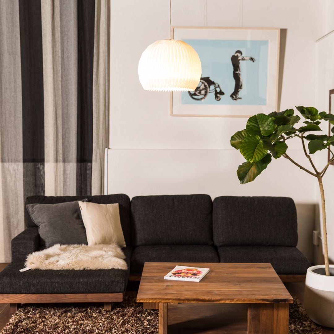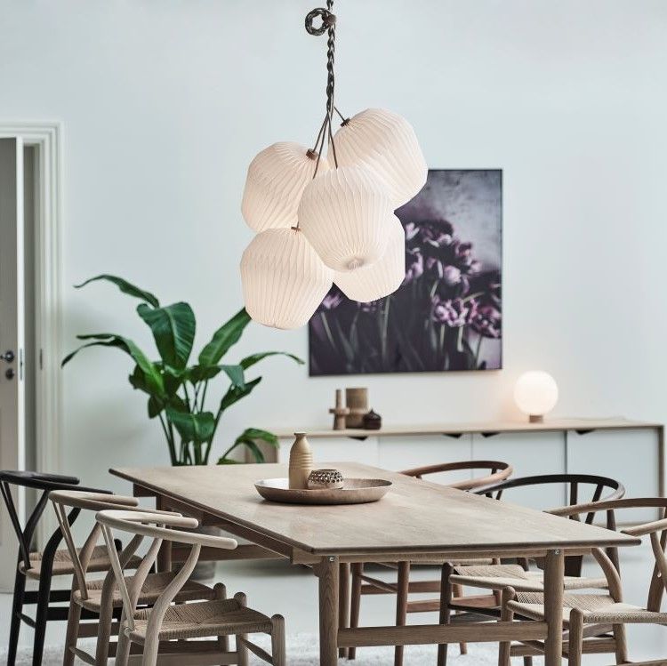 レ・クリントの照明といえば、柔らかいあかりと陰影を生み出す特徴的なシェード。実は日本の折り紙をヒントに製作されました。デンマークを代表する著名な建築家イエンセン・クリントが、1枚の紙を規則的に織り上げて作り出すランプシェードを趣味で製作。その後、イエンセン・クリントの二人の息子によりレ・クリント社を創立、現在のレ・クリントの代表的な形のランプシェードが生み出されました。クリント家の趣味がきっかけで始まったレ・クリント社は、現在では世界的な照明ブランドへと成長し、2003年にはデンマーク王室御用達にも選出されています。今でも当時のハンドクラフトの精神を守り抜き、創業の地デンマークで職人によって一つひとつ手で折り上げて作られていて、一人前になるには10年以上かかると言われています。北欧を代表する照明デザインとして、世界中から愛され続けています。