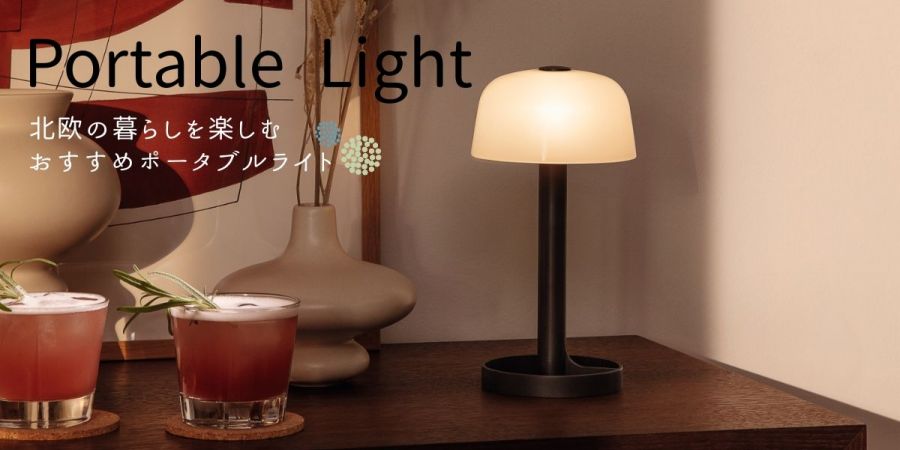 近年注目されているポータブルライト。ポータブルライトとは、電池式や充電式などコードレスで持ち運びができるサイズのライトで、移動が簡単なのでお家の中だけでなくアウトドアシーンでも使えるほか、実は災害時など、いざというときにも役立つ便利なアイテムです。今回はそんな北欧ライフを気軽に取り入れられる便利でおしゃれなポータブルライトをご紹介します。