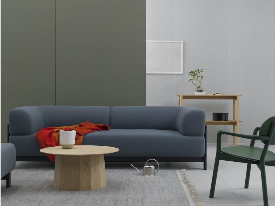 リグナオリジナルのロングセラーソファ、《マニ ソファ》に脚が加わった《マニ レッグ ソファ》。