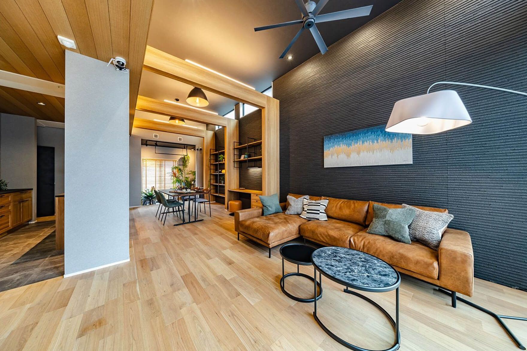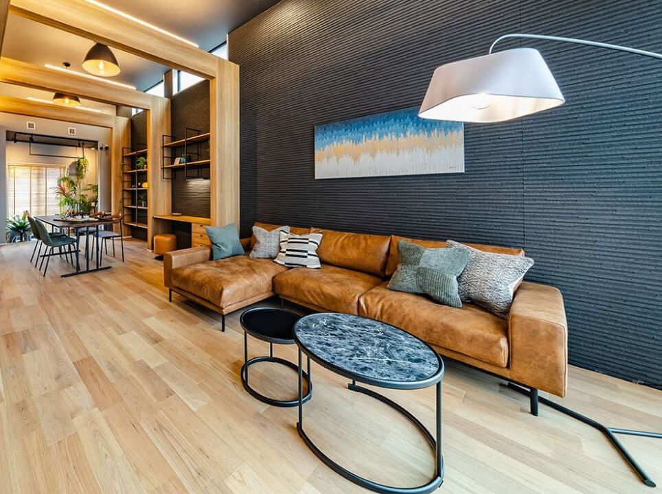 フロアライトやテーブルライトを取り入れて光を点在させることで、空間に自然な陰影と奥行きが生まれます。