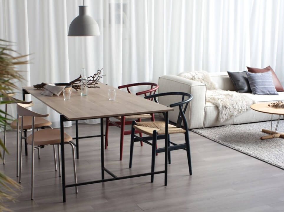 また、白や黒のラミネート塗装と木を組み合わせたテーブルも、北欧らしい清潔感と上品さがあり、おすすめです。