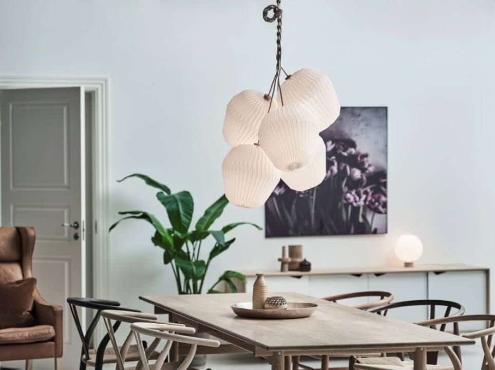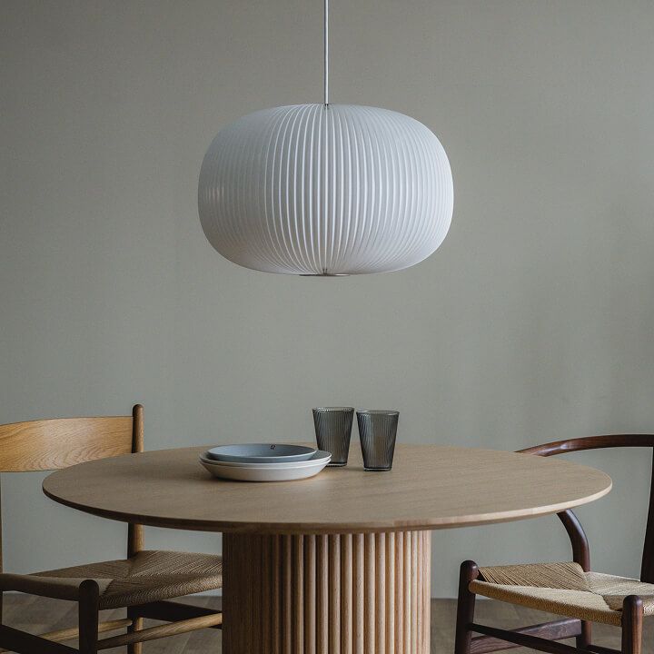 繊細なプリーツと、角のない流れるような有機的なフォルムは、シンプルでありつつ上品さもあり、北欧モダンのインテリアによく馴染みます。