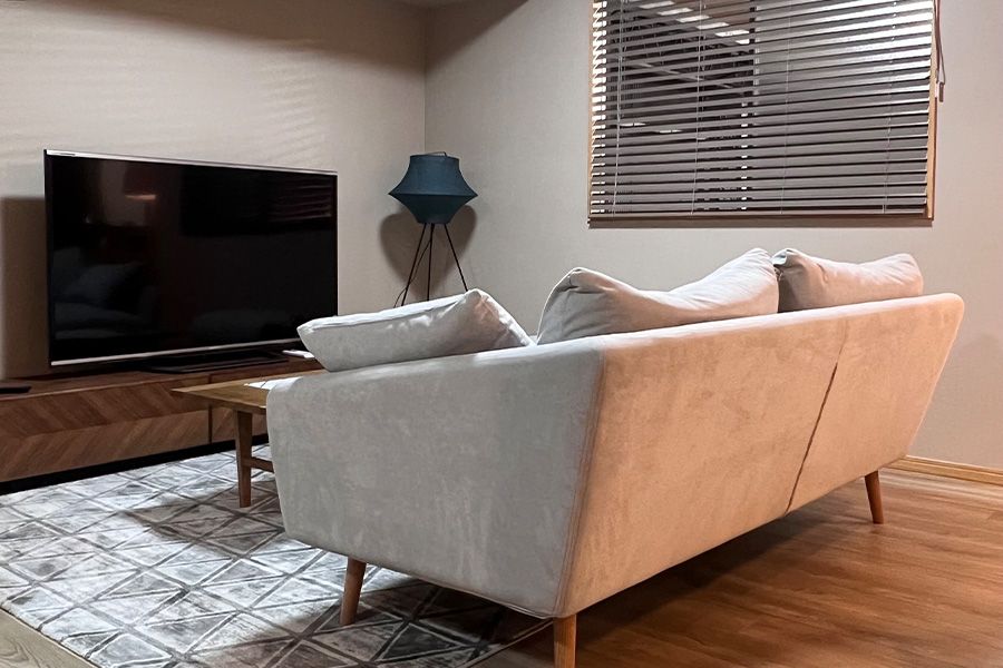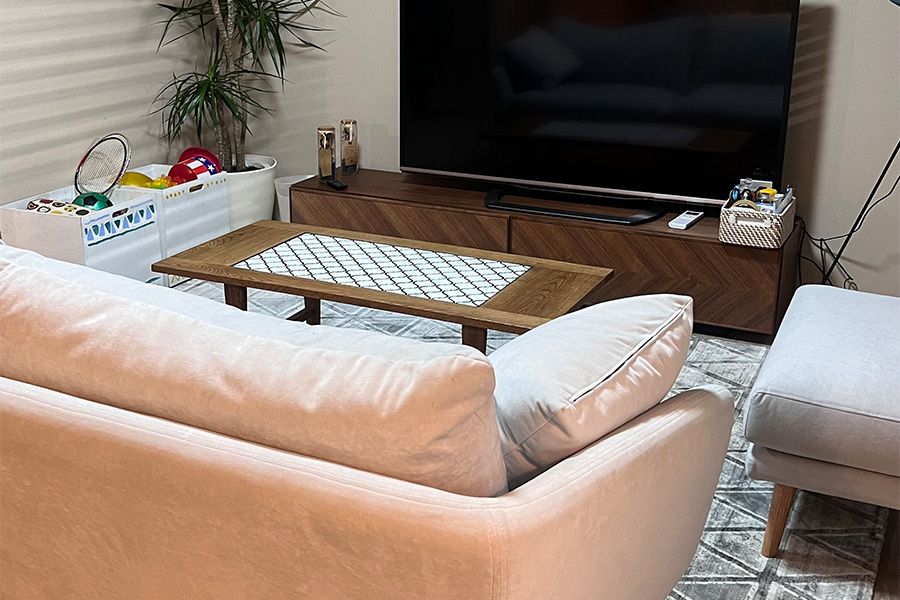 剛太郎の自宅のように、リビングダイニングをソファで仕切るというレイアウトでは、ソファの背面側面の美しさも注目したいポイント。