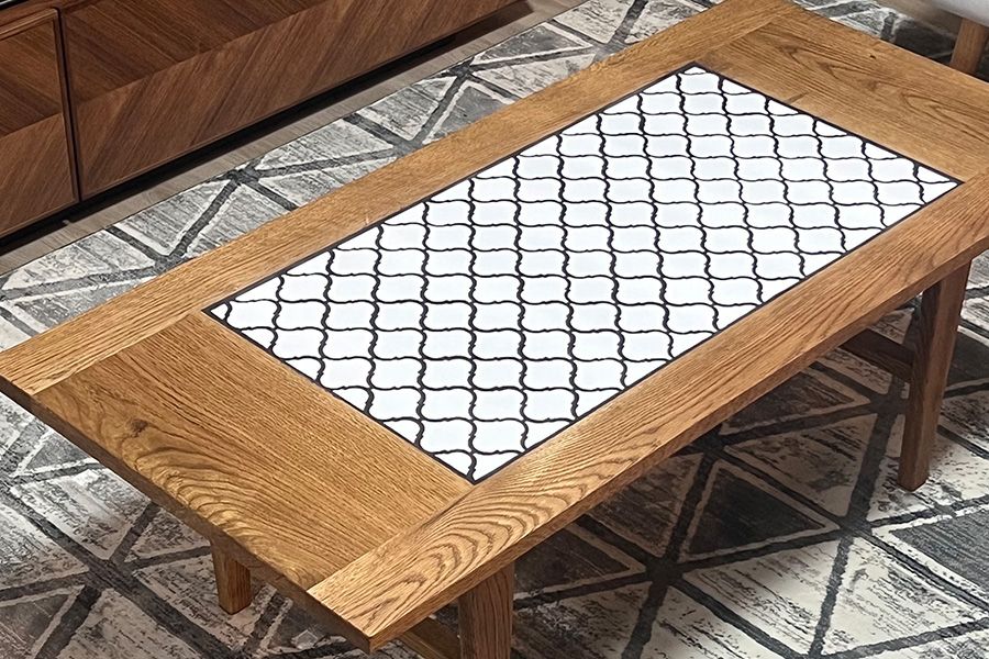 タイルテーブルなので掃除やお手入れしやすく使い勝手がよいテーブルです。