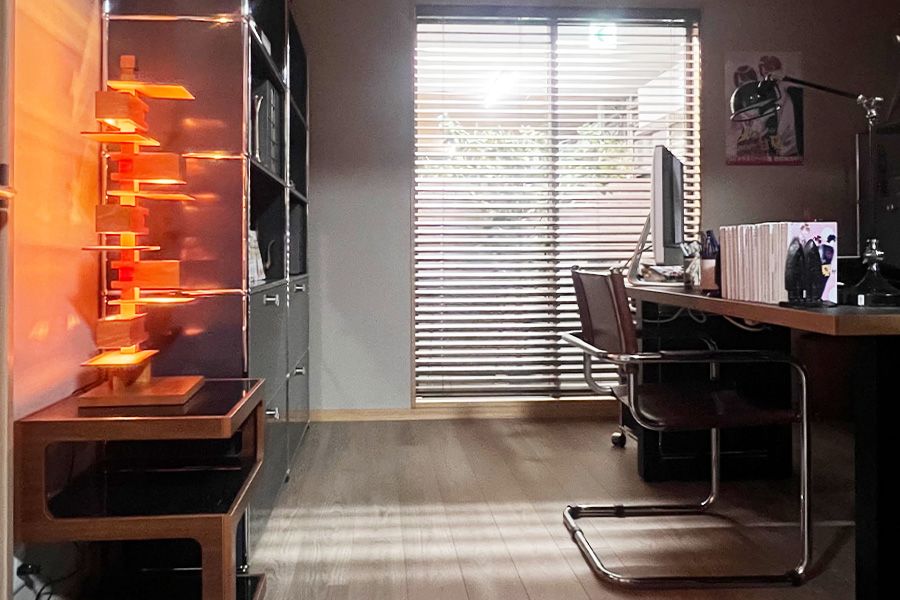 リビングダイニングとはがらっと雰囲気が変わる仕事部屋スペース。