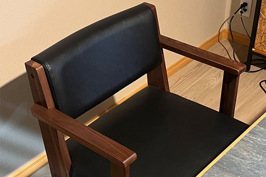 脚部が木製なのもポイント。剛太郎のお部屋ではテーブルの木脚と揃って統一感がでています。