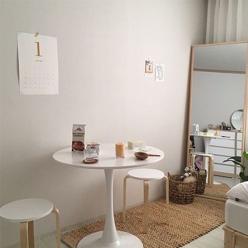 シンプルな無地のラグは、韓国インテリアにももちろん、