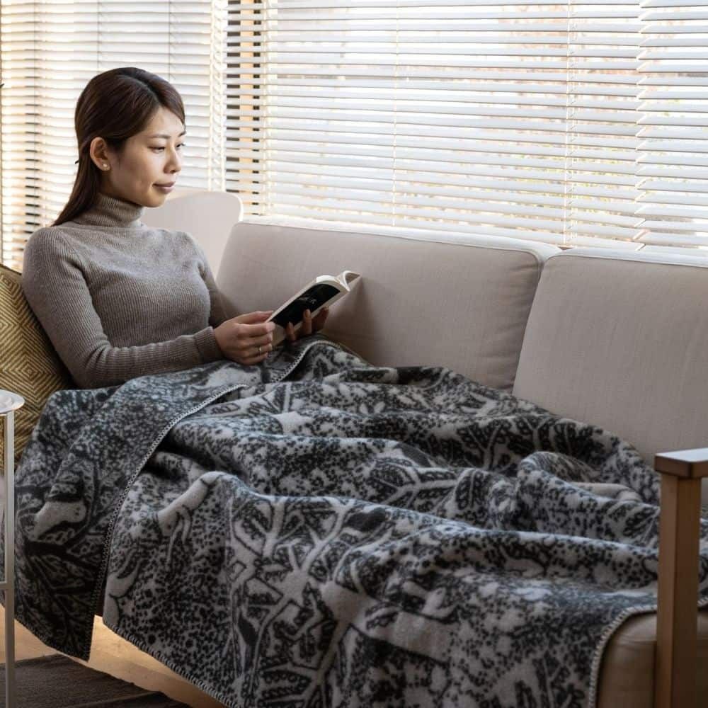 北欧の家庭で秋冬の必需品である「ウールスロー」。200×130cmと大判サイズながらブランケットよりも軽量で持ち運びにも最適です。