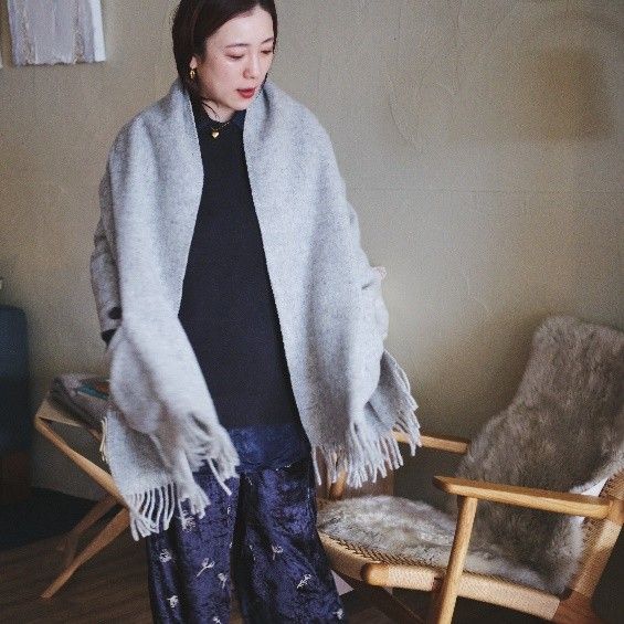 カシミヤ混のマフラーは肌触りがなめらか。CHOUCHOの柄は日本オリジナルアイテムです。ストールはゆったりサイズなので、肩に羽織ったり、ひざ掛けにしたり、ベッドリネンの上に重ねても◎ボタンやポケットがついているタイプもあります。