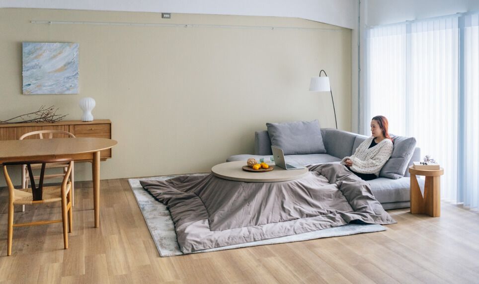 こたつでの過ごし方、見た目のテイストは、コーディネート次第で大きく変わります。