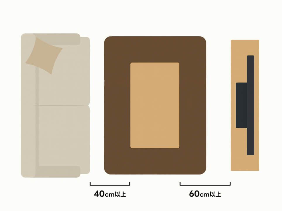 こたつ布団は天板サイズよりも広がるため、余裕をもったレイアウトを心がけましょう。