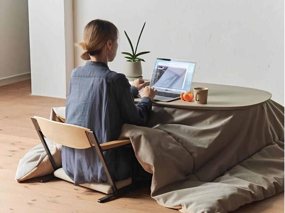 デザインの幅も広く、シンプルなファブリックタイプから、和の雰囲気が漂う木製のものまでさまざま。限られたスペースでも“こたつらしいくつろぎ”を楽しみたい方にぴったりのスタイルです。