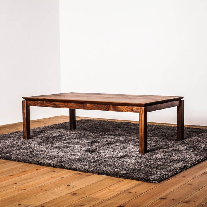 ブラックのコの字脚はリグナでも特に人気のあるデザインですが、こたつにすると横から座れず不便。それなら!と生まれたのがこのユニークな構造です。