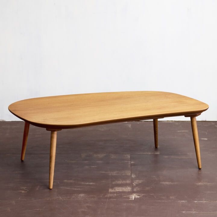 柔らかな曲線を描く天板と、すっきりとした脚部のバランスが美しいラスモ コタツテーブル。丸みを帯びたフォルムがどこか愛らしく、ウッディな雰囲気を漂わせながらも空間に軽やかさを添えてくれる一台です。