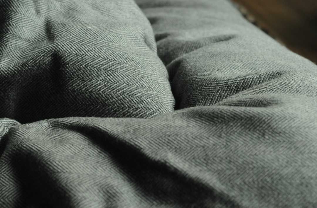 リグナがこたつ布団に採用したのは、他のインテリアと合わせて使っても違和感のないようなヘリンボーン生地。